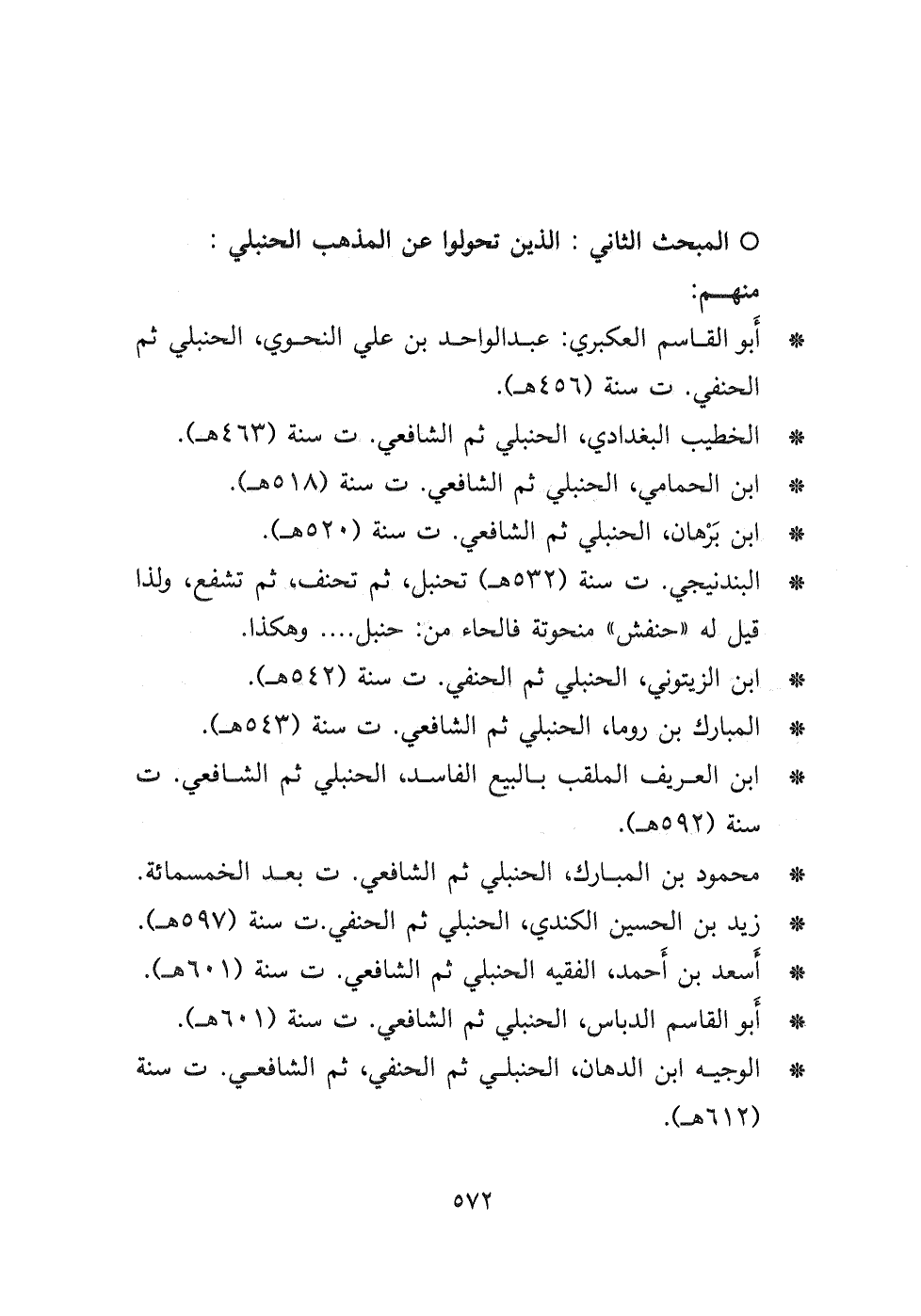 * المبحث الثاني: الذين تحولوا عن المذهب الحنبلي: منهم: