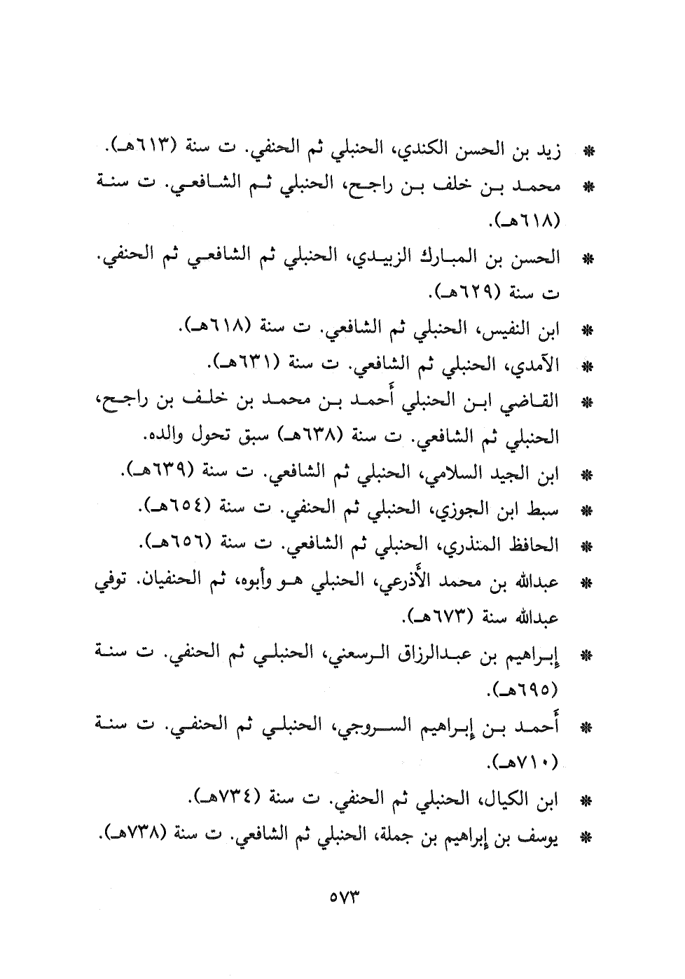 - الحسن بن المبارك الزبيدي، الحنبلي ثم الشافعي ثم الحنفي ت سنة (٦٢٩ هـ)