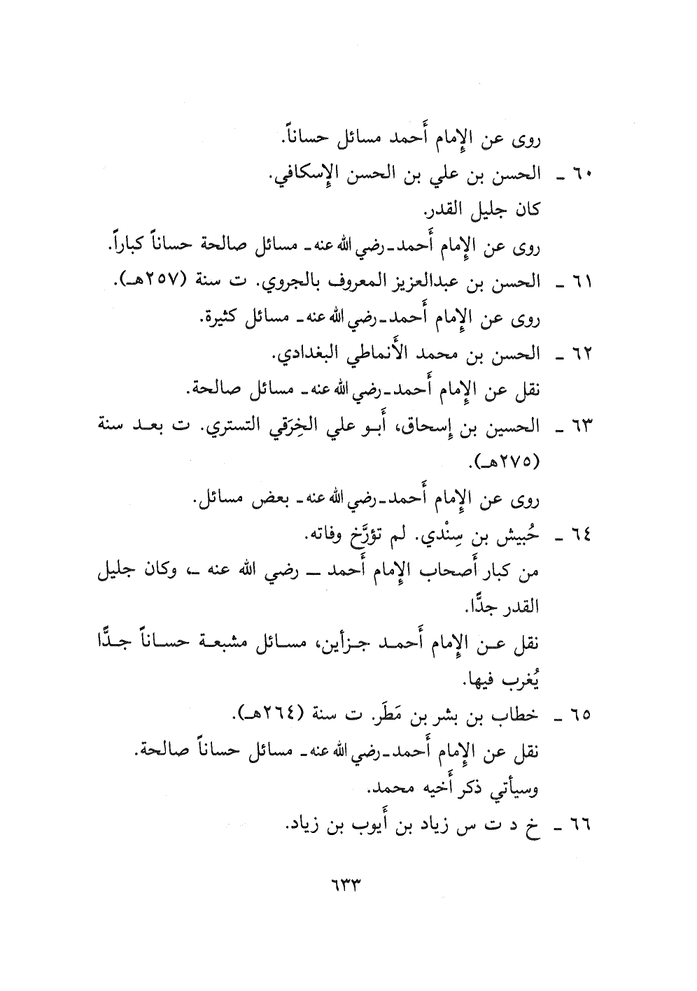 ٦١- الحسن بن عبد العزيز المعروف بالجروي ت سنة (٢٥٧ هـ) .
