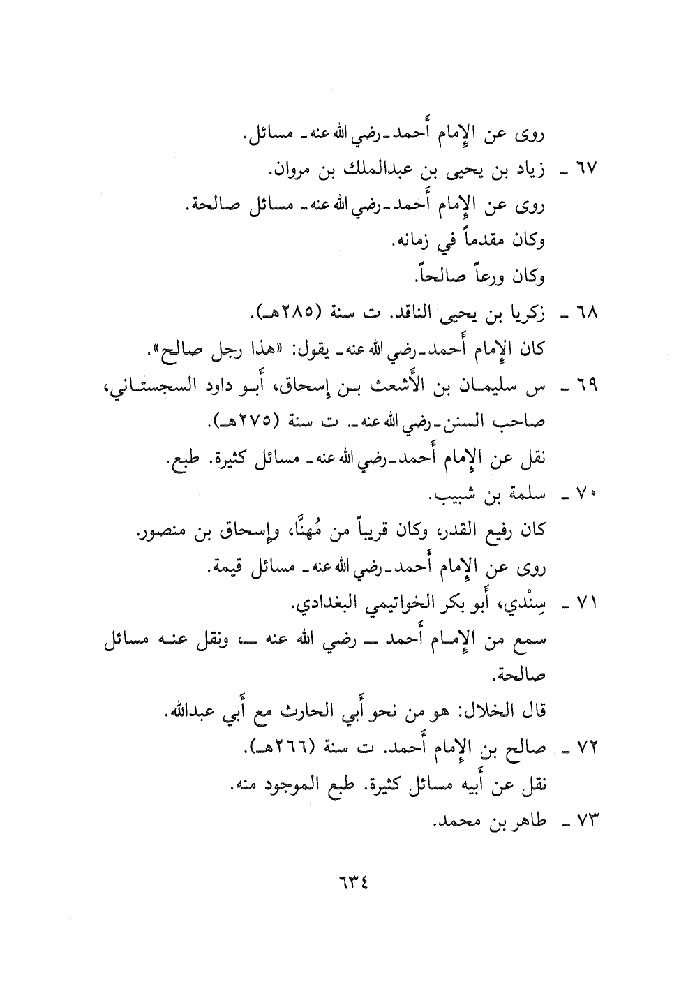 ٧٢- صالح بن الإمام أحمد ت سنة (٢٦٦ هـ) .