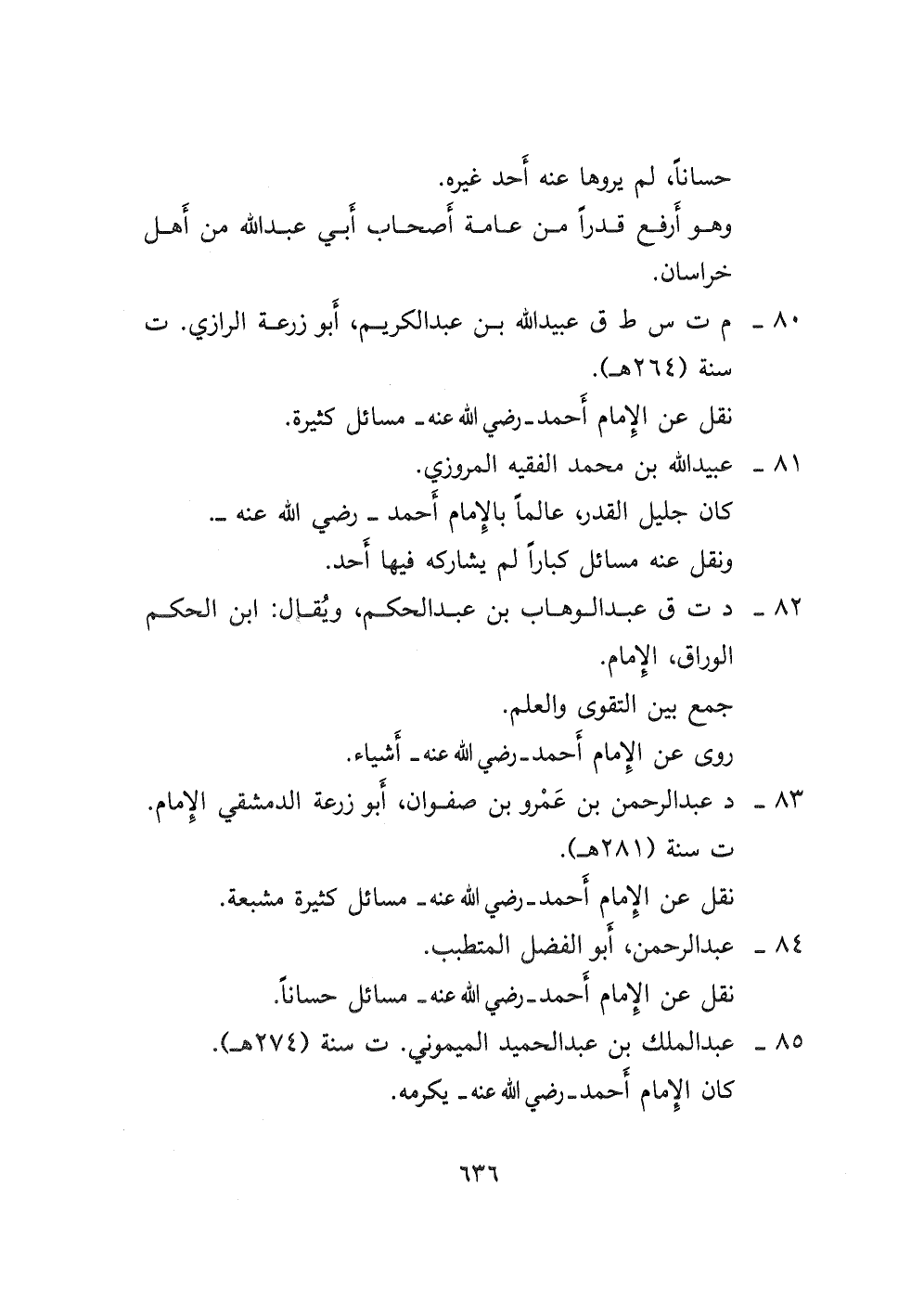نقل عن الإمام أحمد- رضي الله عنه- مسائل كثيرة مشبعة.