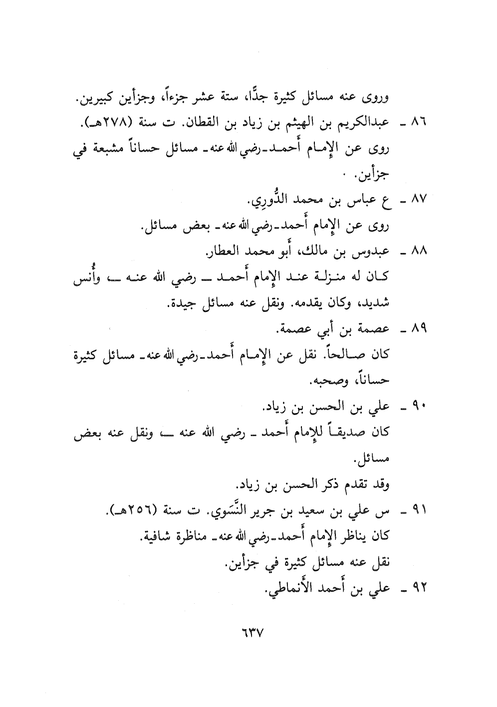 وروى عنه مسائل كثيرة جدا، ستة عشر جزءا، وجزأين كبيرين.