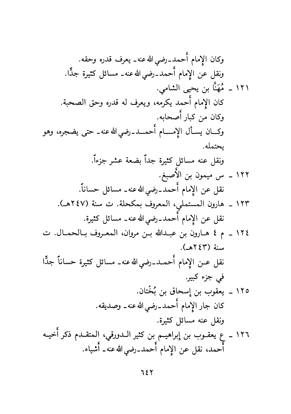١٢٦- ع يعقوب بن إبراهيم بن كثير الدورقي، المتقدم ذكر أخيه أحمد، نقل عن الإمام أحمد- رضي الله عنه- أشياء.