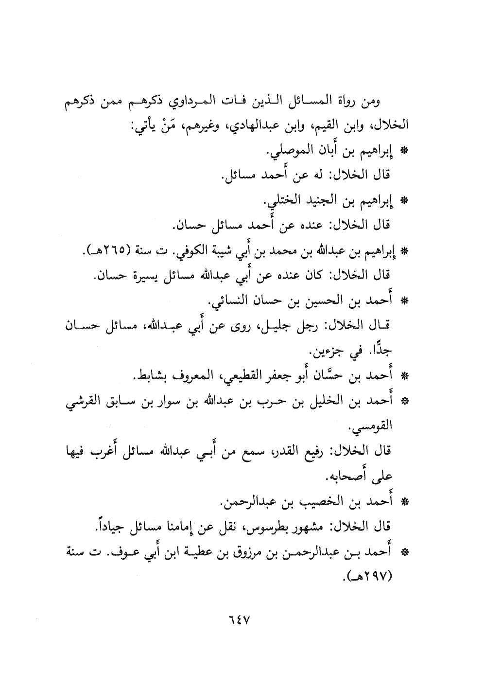 ومن رواة المسائل الذين فات المرداوي ذكرهم ممن ذكرهم الخلال، وابن القيم، وابن عبد الهادي، وغيرهم، مَنْ يأتي: