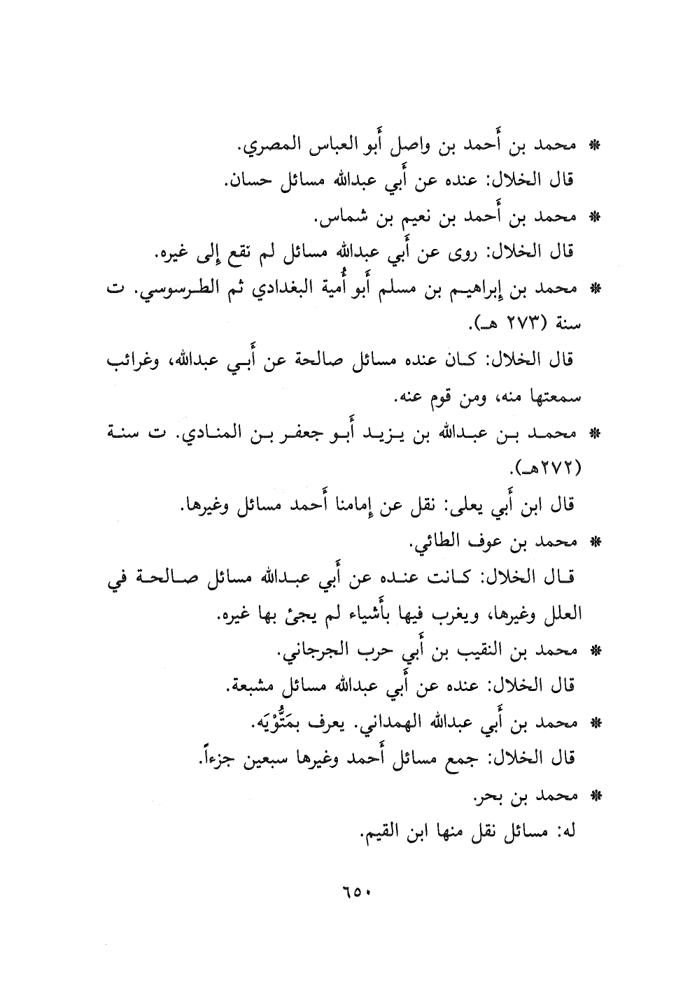 قال الخلال: جمع مسائل أحمد وغيرها سبعين جزءا.