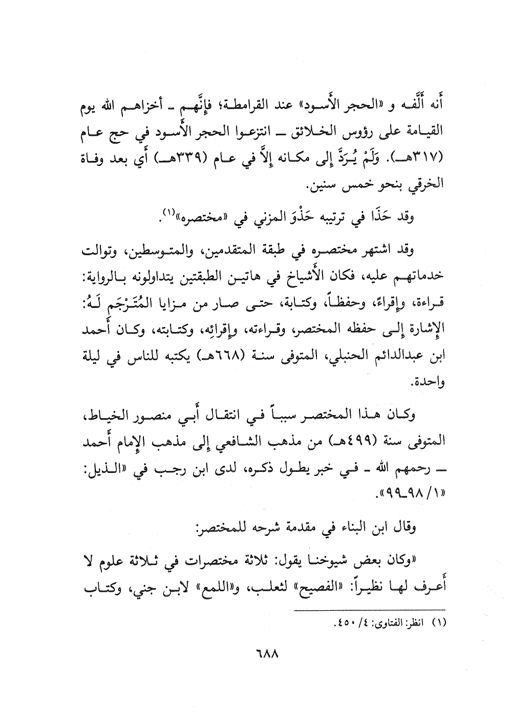 أنه ألفه و " الحجر الأسود " عند القرامطة، فإنهم - أخزاهم الله يوم القيامة على رؤوس الخلائق - انتزعوا الحجر الأسود في حج عام (٣١٧ هـ) . ولم يرد إلى مكانه إلا في عام (٣٢٩ هـ) أي بعد وفاة الخرقي بنحو خمس سنين.