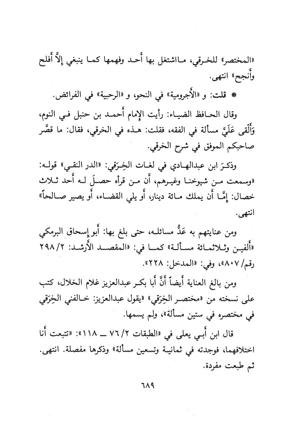 " المختصر " للخرقي، ما اشتغل بها أحد وفهمها كما ينبغي إلا أفلح وأنجح " انتهى.