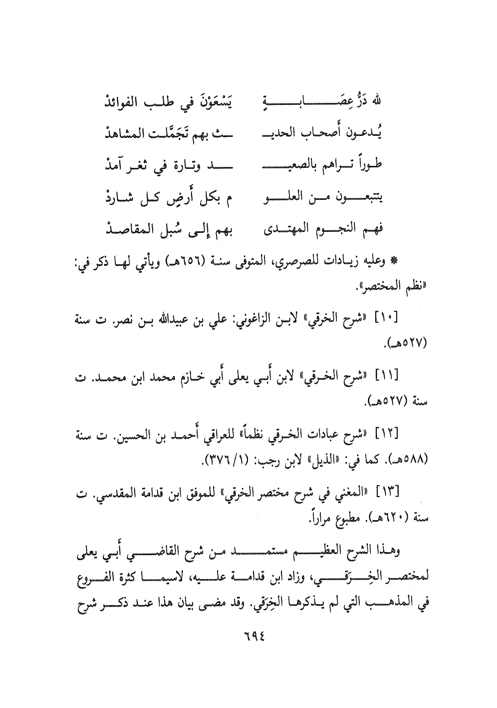 ١٢- " شرح عبادات الخرقي نظماً " للعراقي أحمد بن الحسين ت سنة (٥٨٨ هـ) . كما في: " الذيل " لابن رجب: (١/٣٧٦) .