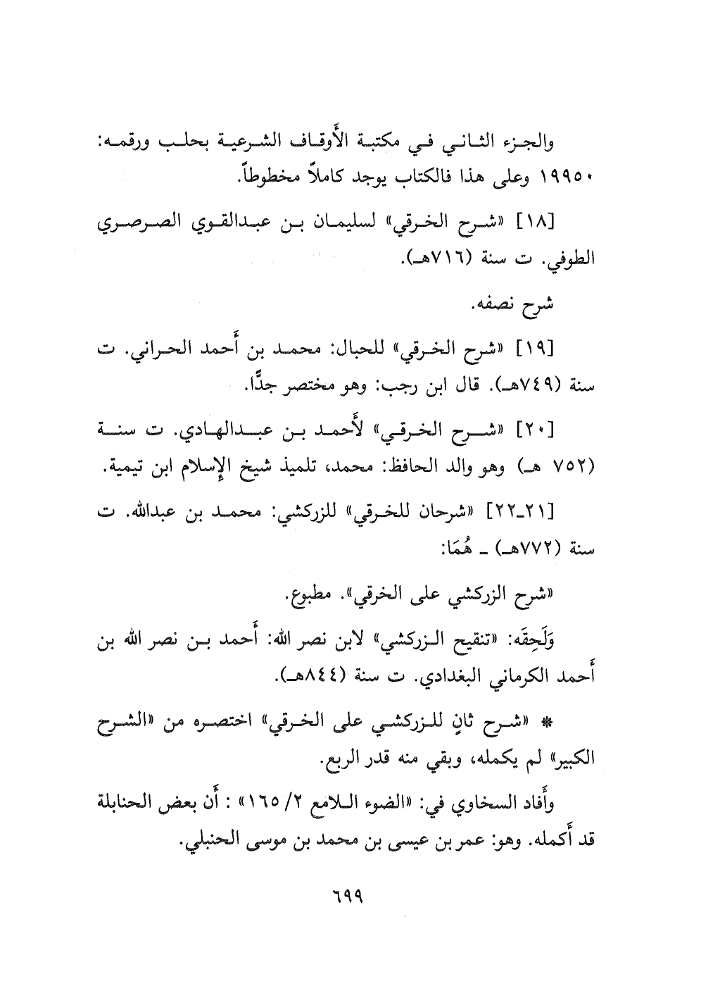 ٢١-٢٢ شرحان للخرقي " للزركشي: محمد بن عبد الله ت سنة (٧٧٢ هـ) هما: