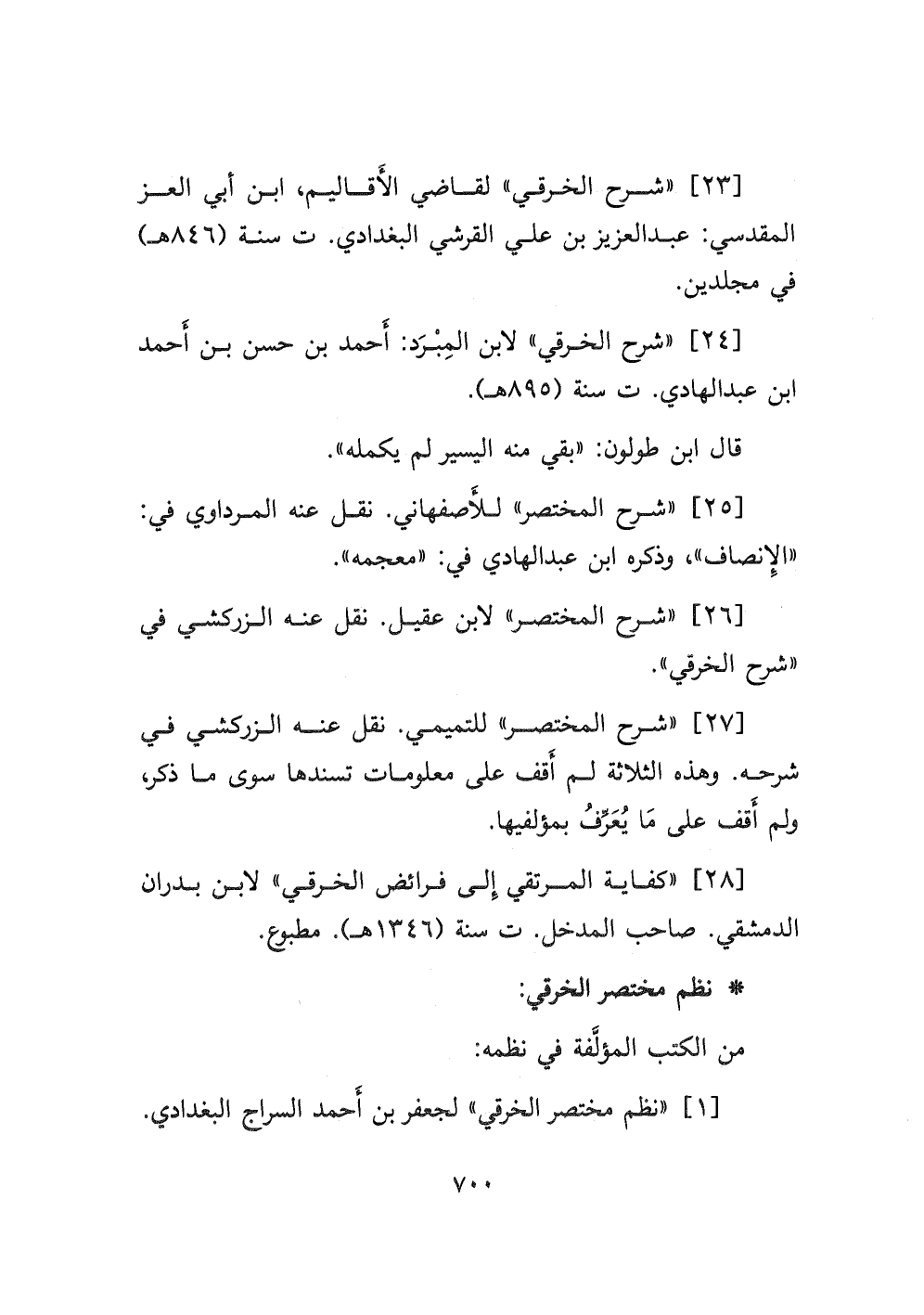 ١- " نظم مختصر الخرقي " لجعفر بن أحمد السراج البغدادي.