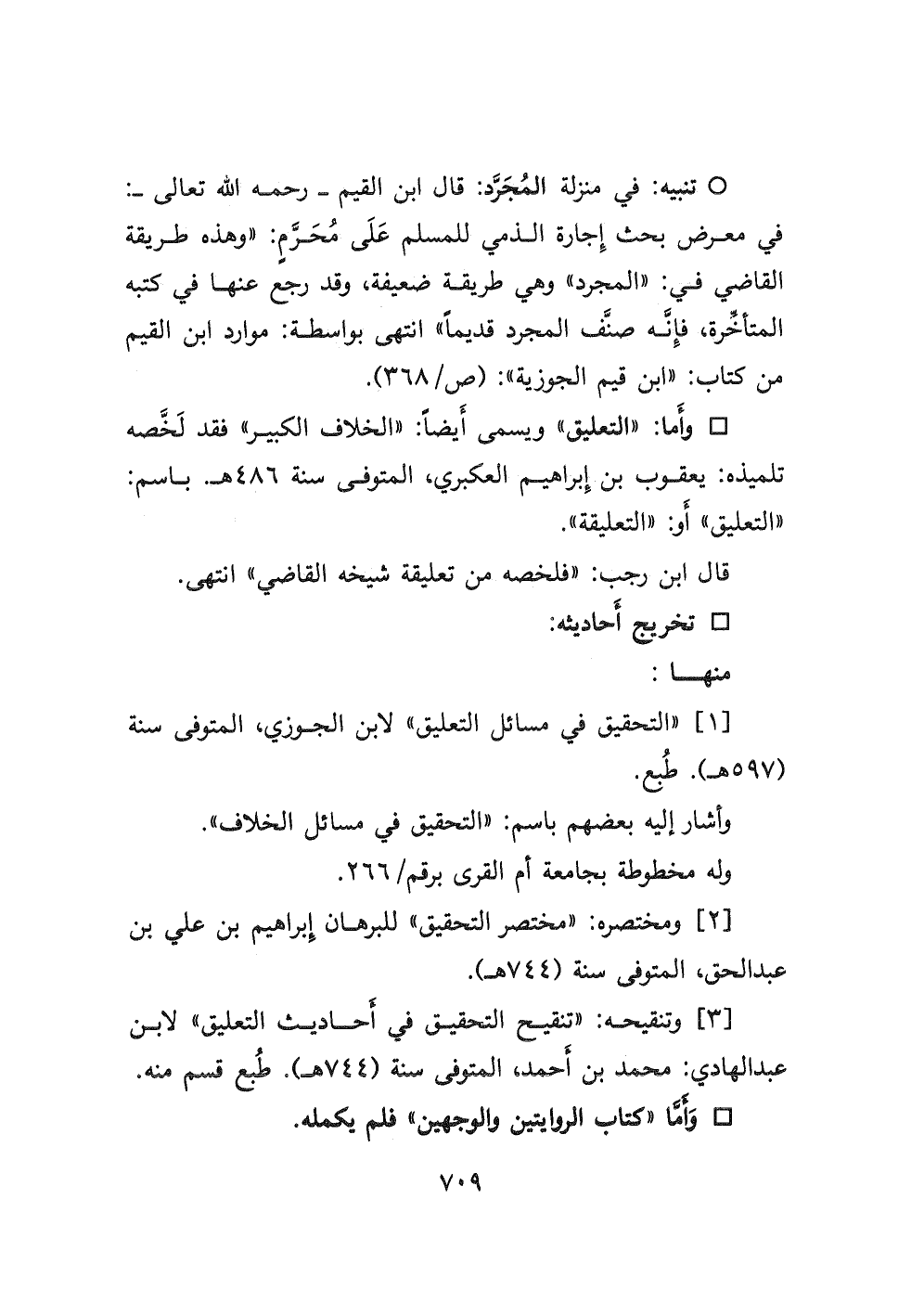 ١- " التحقيق في مسائل التعليق " لابن الجوزي، المتوفى سنة (٥٩٧ هـ) . طبع.