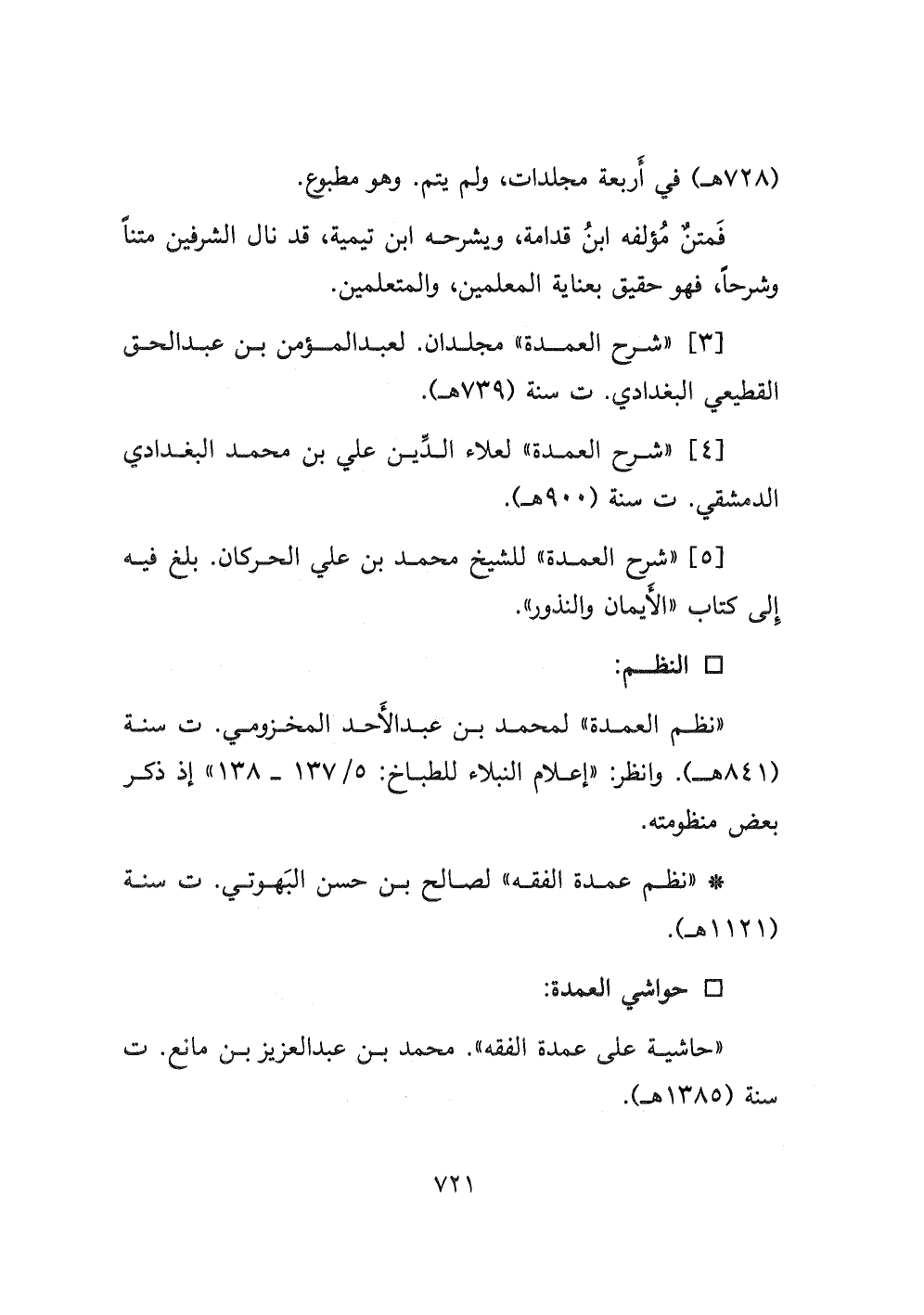 - " نظم العمدة " لمحمد بن عبد الأحد المخزومي ت سنة (٨٤١ هـ) . وانظر " إعلام النبلاء " للطباخ: ٥/ ١٣٧- ١٣٨ " إذ ذكر بعض منظومته.