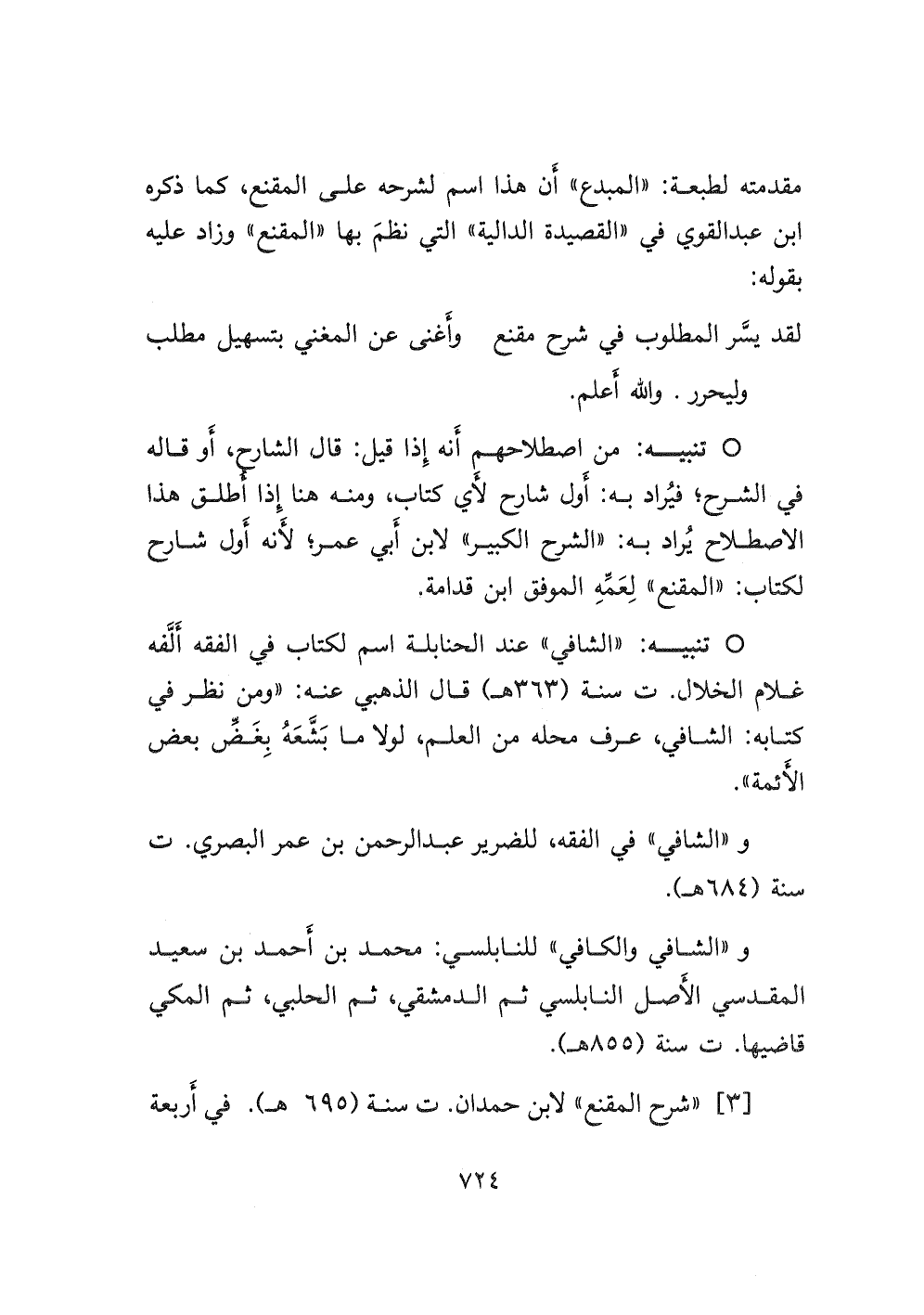 مقدمته لطبعة: " المبدع " أن هذا اسم لشرحه على المقنع، كما ذكره ابن عبد القوي في " القصيدة الدالية " التي نظم بها " المقنع " وزاد عليه بقوله: