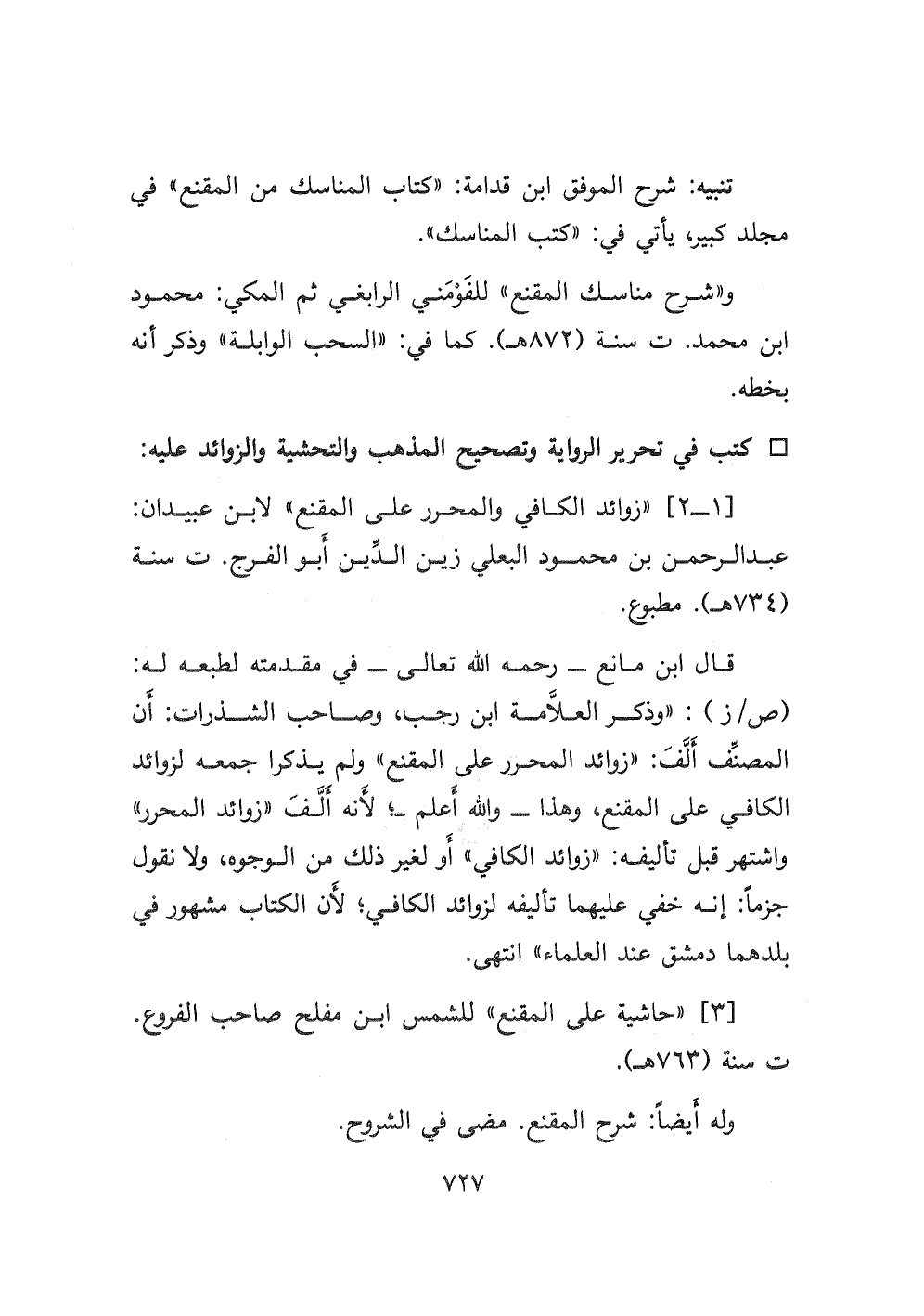 ١-٢ " زوائد الكافي والمحرر على المقنع " لابن عبيدان: عبد الرحمن بن محمود البعلي زين الدين أبو الفرج ت سنة (٧٣٤ هـ) . مطبوع.