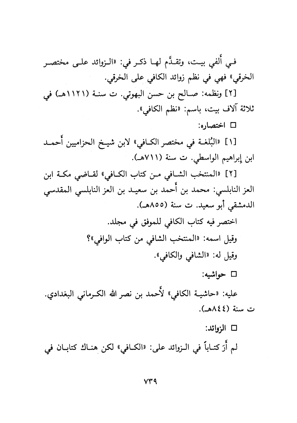 ٢- ونظمه: صالح بن حسن البهوتي ت سنة (١١٢١ هـ) في ثلاثة آلاف بيت، باسم: " نظم الكافي ".