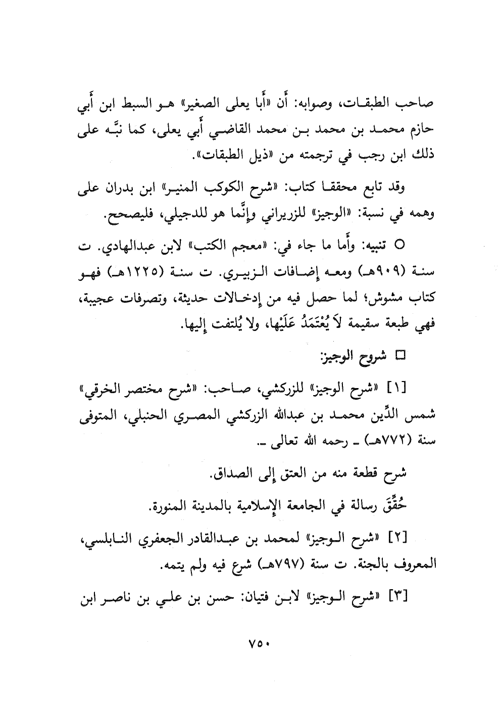 وقد تابع محققا كتاب: شرح الكوكب المنير " ابن بدران على وهمه في نسبة: " الوجيز " للزريراني وإنما هو للدجيلي، فليصحح.