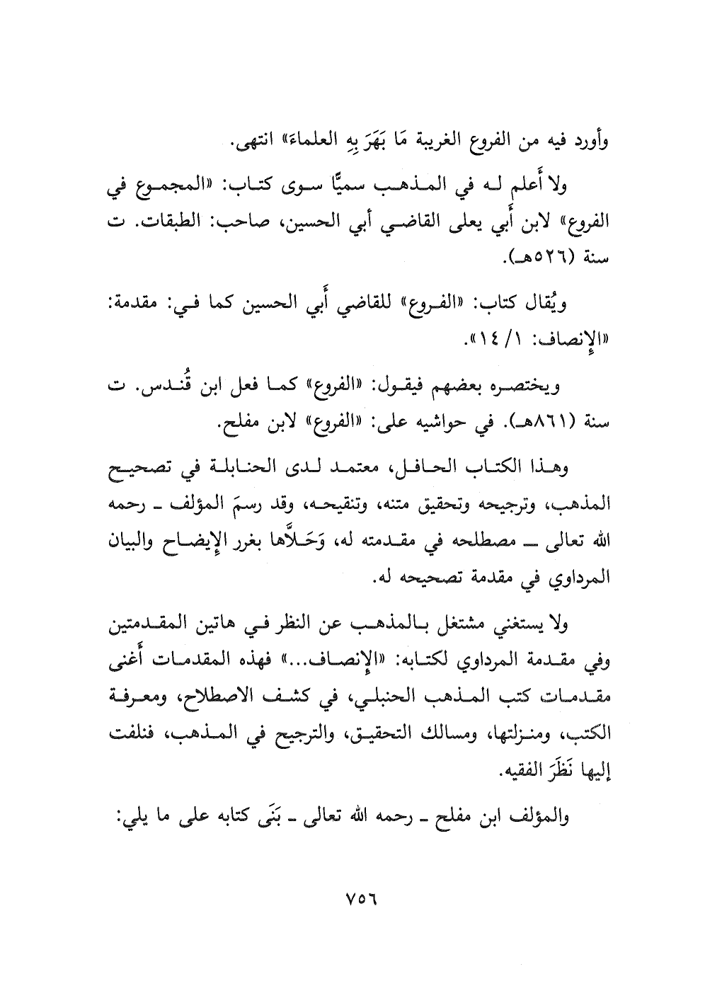 ولا يستغني مشتغل بالمذهب عن النظر في هاتين المقدمتين وفي مقدمة المرداوي لكتابه: " الإنصاف ... " فهذه المقدمات أغنى مقدمات كتب المذهب الحنبلي، في كشف الاصطلاح، ومعرفة الكتب، ومنزلتها، ومسالك التحقيق، والترجيح في المذهب، فنلفت إليها نظر الفقيه.