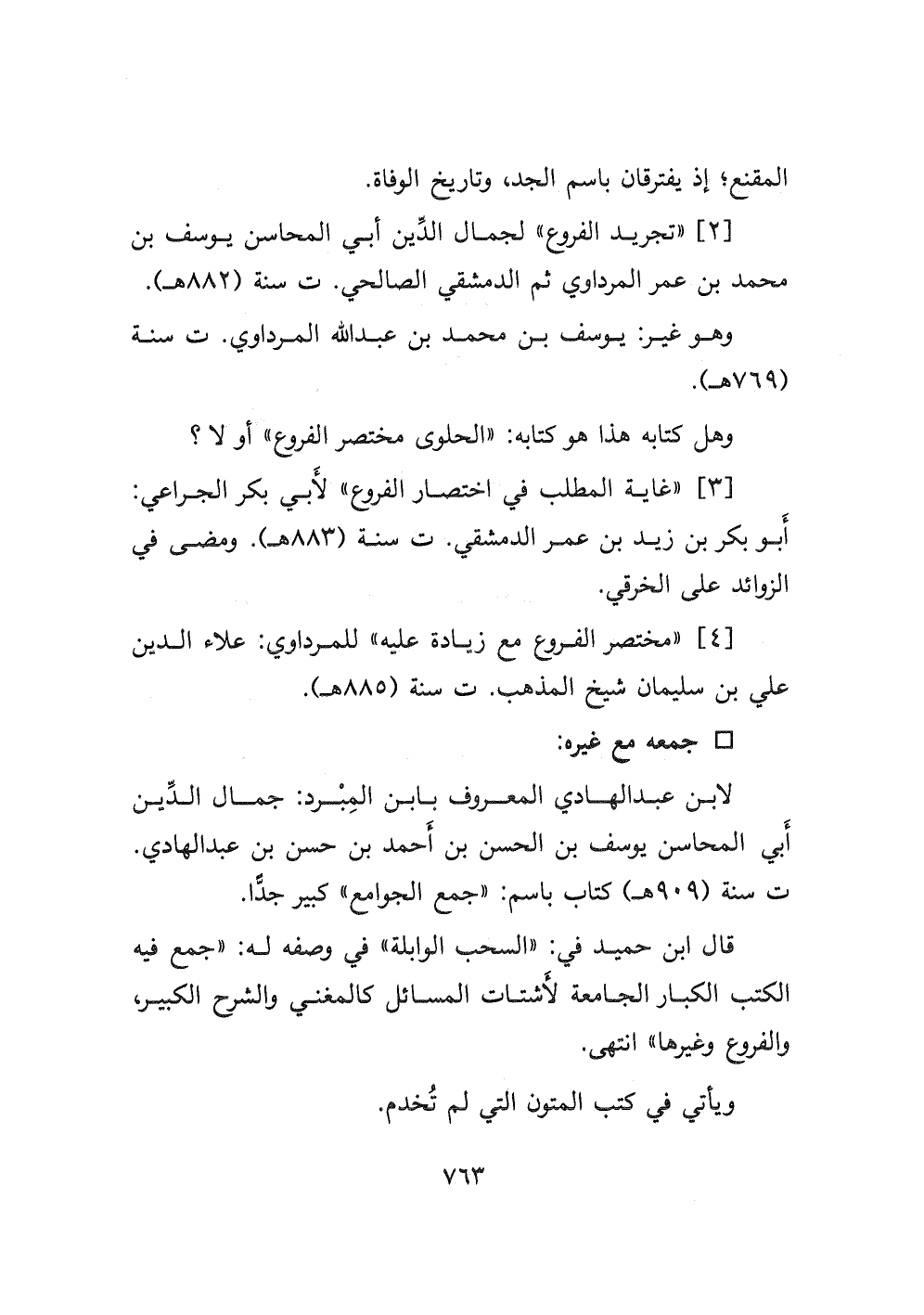 ٢- " تجريد الفروع، لجمال الدين أبي المحاسن يوسف " بن محمد بن عمر المرداوي ثم الدمشقي الصالحي ت سنة (٨٨٢ هـ) . وهو غير يوسف بن محمد بن عبد الله المرداوي ت سنة (٧٦٩ هـ)