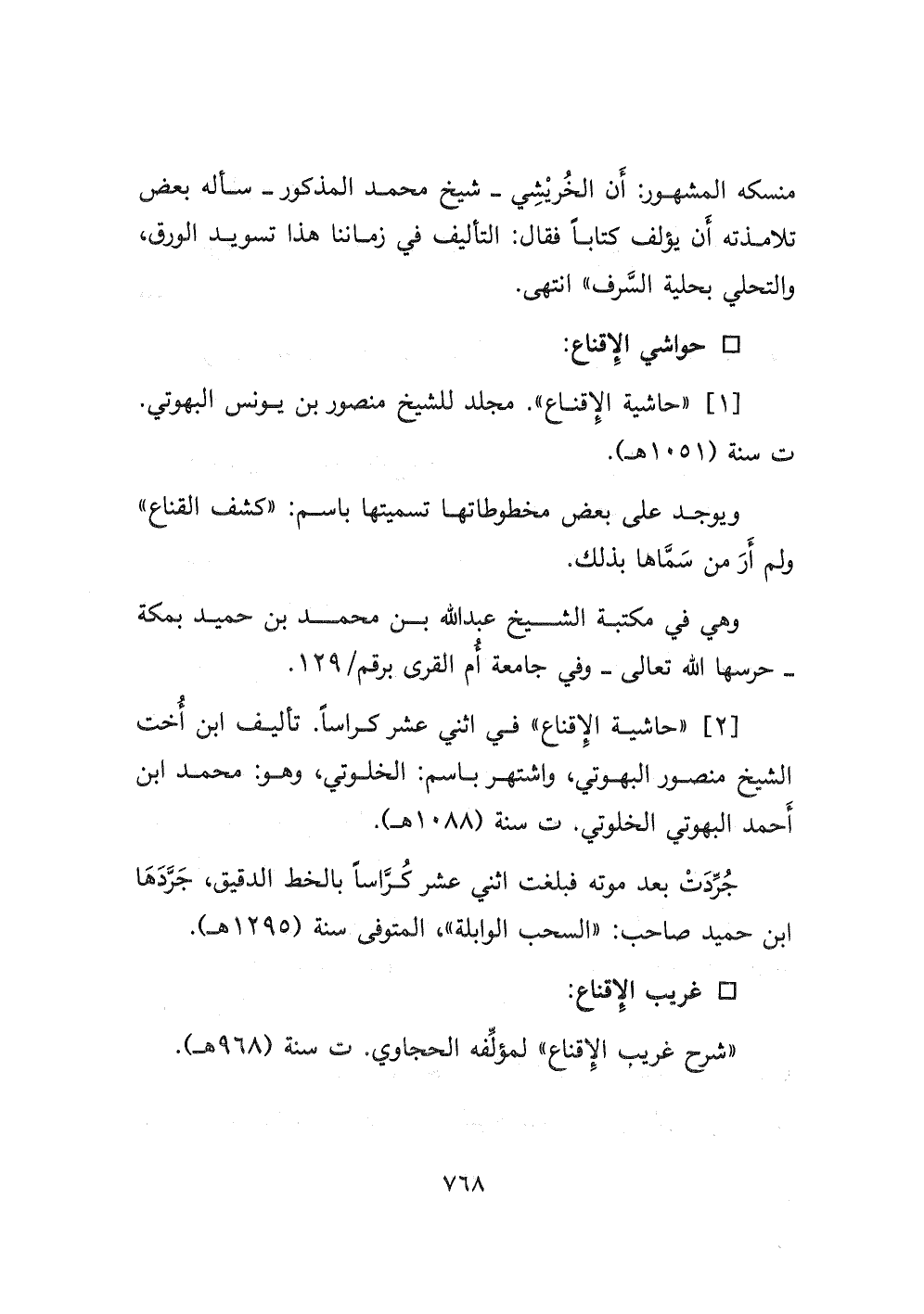 ١- " حاشية الإقناع " مجلد للشيخ منصور بن يونس البهوتي ت سنة (١٠٥١ هـ) .