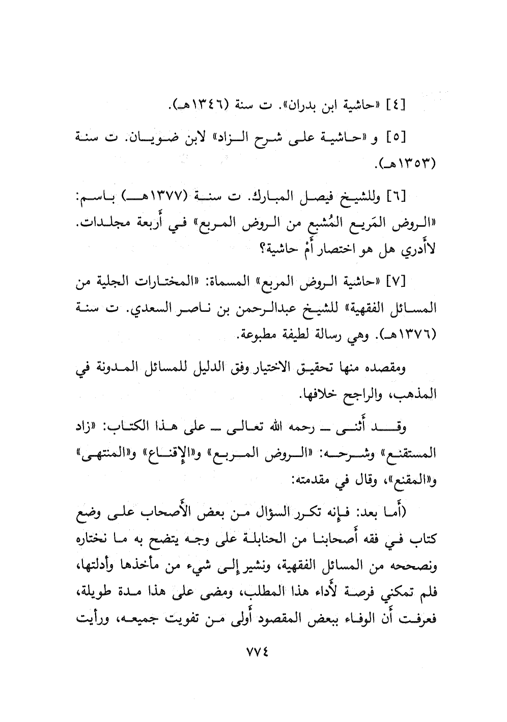 وقد أثنى- رحمه الله تعالى- على هذا الكتاب: " زاد المستقنع " وشرحه: " الروض المربع " و " الإقناع " و " المنتهى " و " المقنع "، وقال في مقدمته: