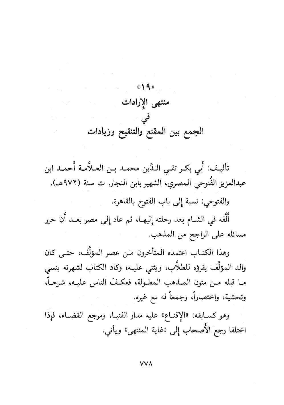 ١٩- منتهى الإرادات في الجمع بين المقنع والتنقيح وزيادات