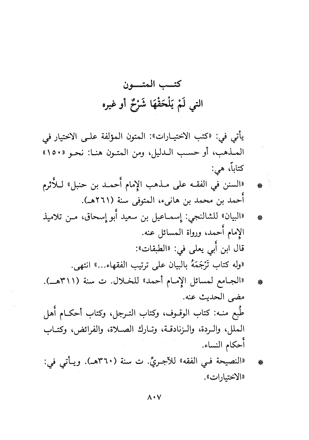 - " النصيحة في الفقه " للآجري ت سنة (٣٦٠ هـ) . ويأتي في: " الاختيارات ".