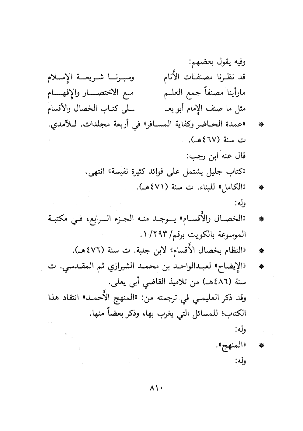 - " الإيضاح " لعبد الواحد بن محمد الشيرازي ثم المقدسي ت سنة (٤٨٦ هـ) من تلاميذ القاضي أبي يعلى.