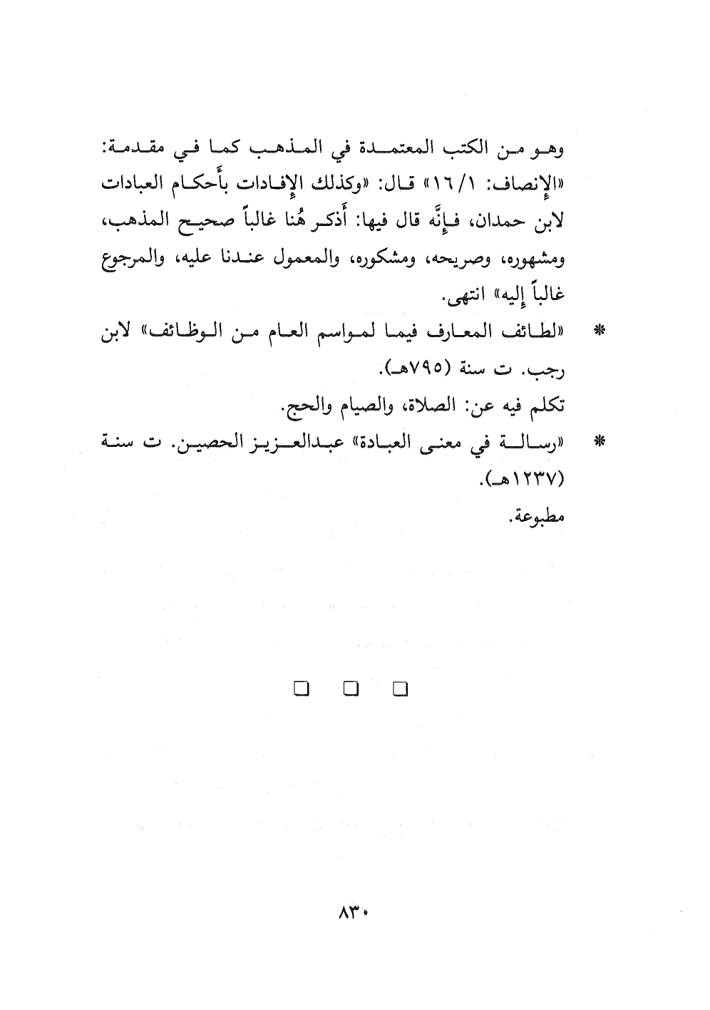 - " رسالة في معنى العبادة " عبد العزيز الحصين ت سنة (١٢٣٧ هـ) . مطبوعة.