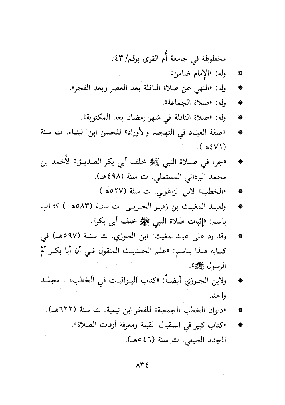 - " صفة العباد في التهجد والأوراد " للحسن ابن البناء ت سنة (٤٧١ هـ)
