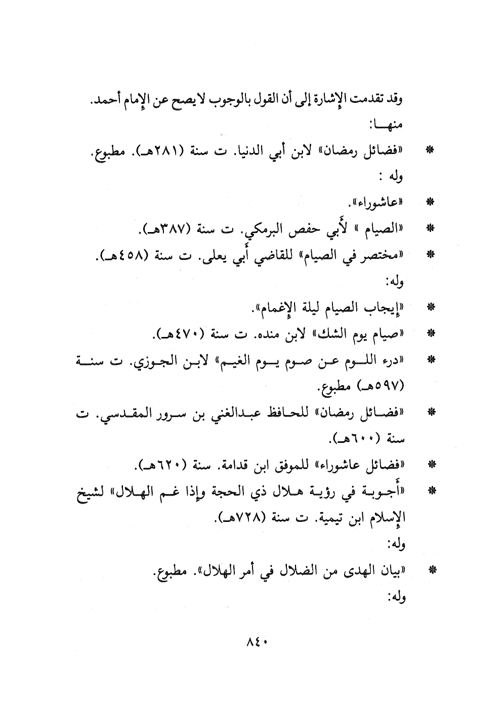 - " مختصر في الصيام " للقاضي أبي يعلى ت سنة (٤٥٨ هـ) .
