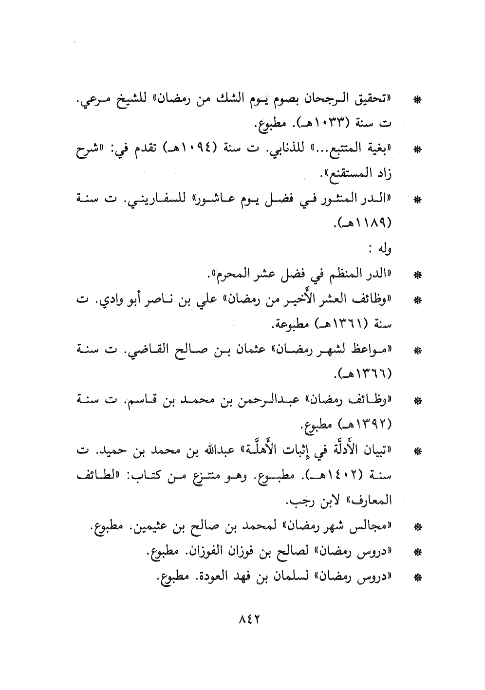 - " وظائف رمضان " عبد الرحمن بن محمد بن قاسم " ت سنة (١٣٩٢ هـ) مطبوع.