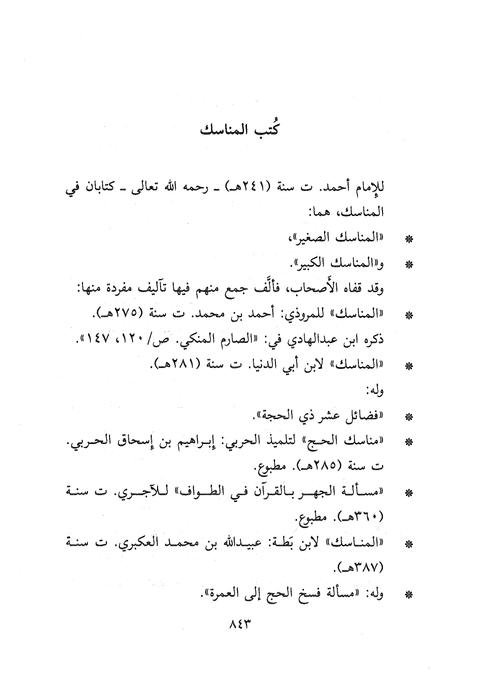 - " مناسك الحج " لتلميذ الحربي: إبراهيم بن إسحاق الحربي ت سنة (٢٨٥ هـ) . مطبوع.