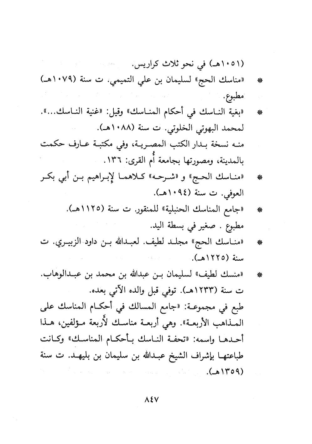 - " منسك لطيف " لسليمان بن عبد الله بن محمد بن عبد الوهاب ت سنة (١٢٣٣ هـ) . توفي قبل والده الآتي بعده.
