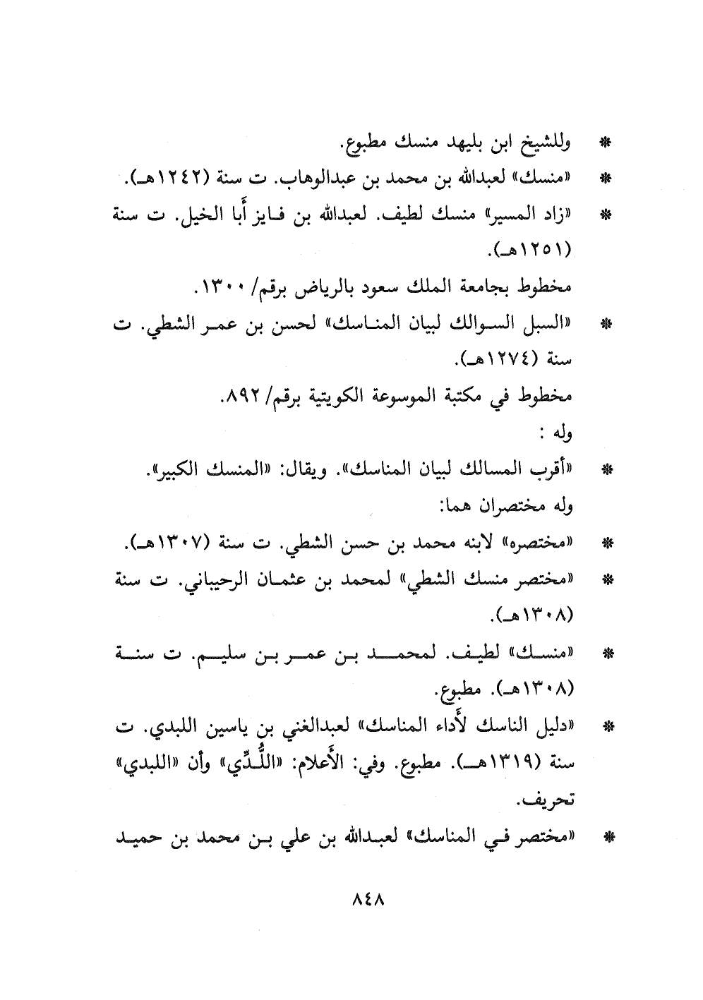 - " مختصر منسك الشطي " لمحمد بن عثمان الرحيباني ت سنة (١٣٠٨ هـ)