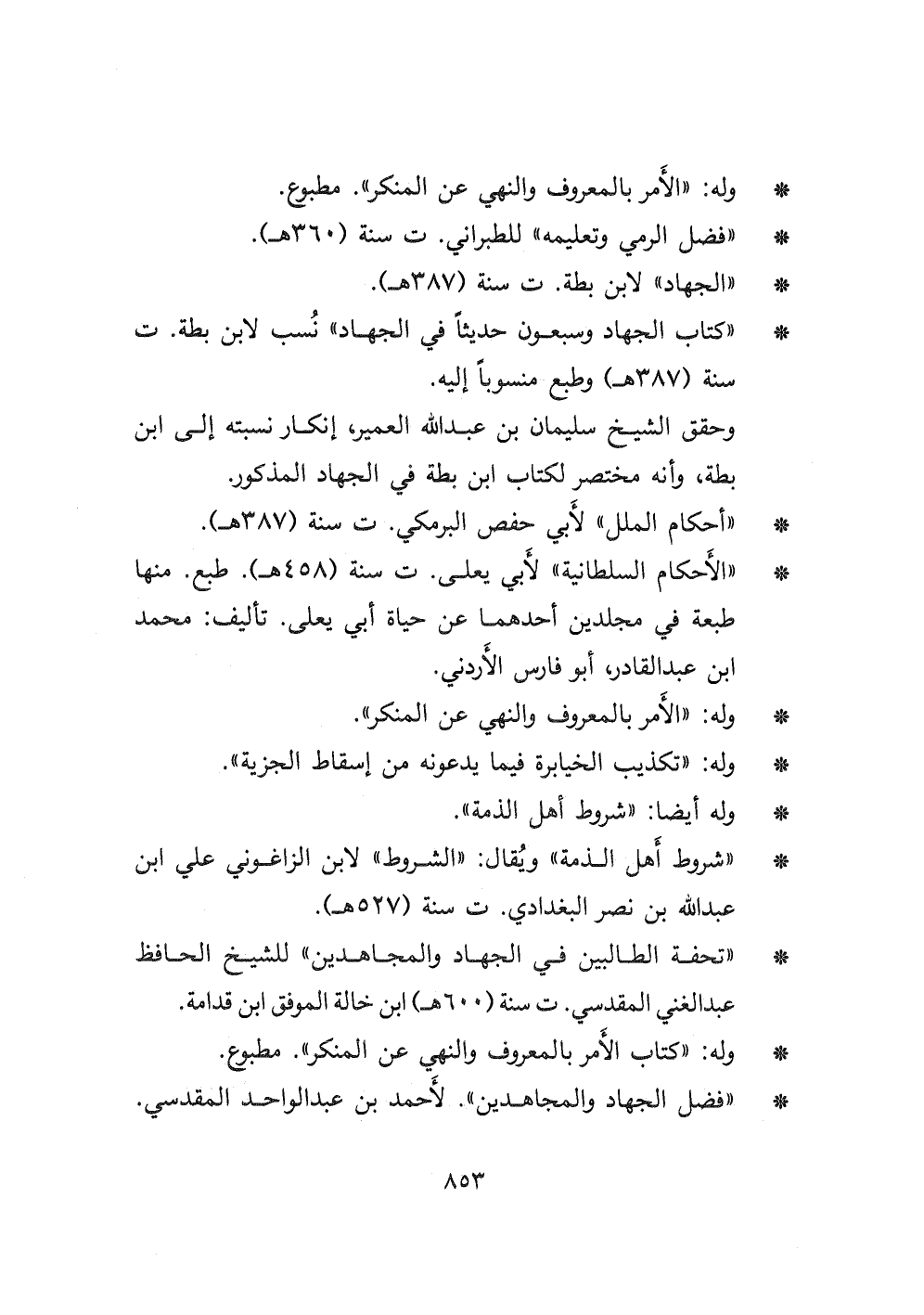 - " الجهاد " لابن بطة ت سنة (٣٨٧ هـ) .