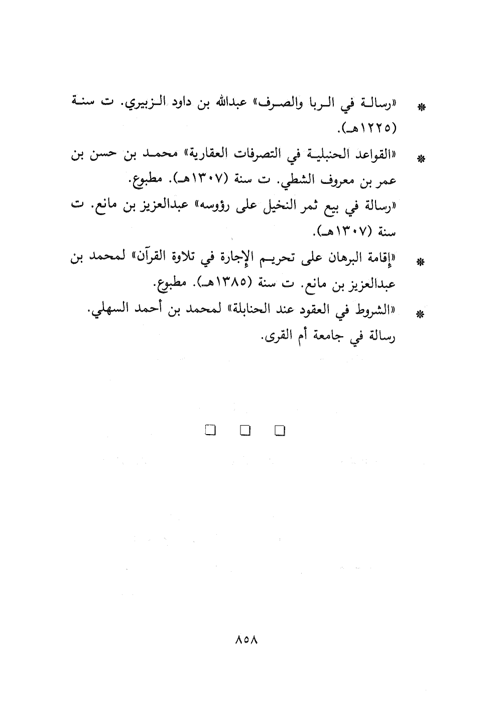 - " القواعد الحنبلية في التصرفات العقارية " محمد بن حسن بن عمر بن معروف الشطي ت سنة (١٣٠٧ هـ) . مطبوع.