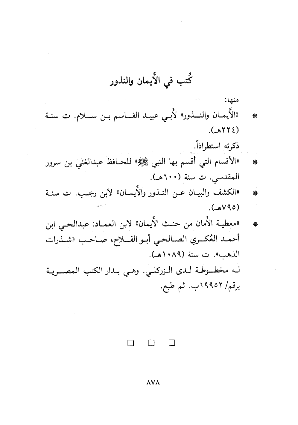 - " معطية الأمان من حنث الأيمان " لابن العماد: عبد الحي ابن أحمد العُكري الصالحي أبو الفلاح، صاحب " شذرات الذهب " ت سنة (١٠٨٩ هـ) .