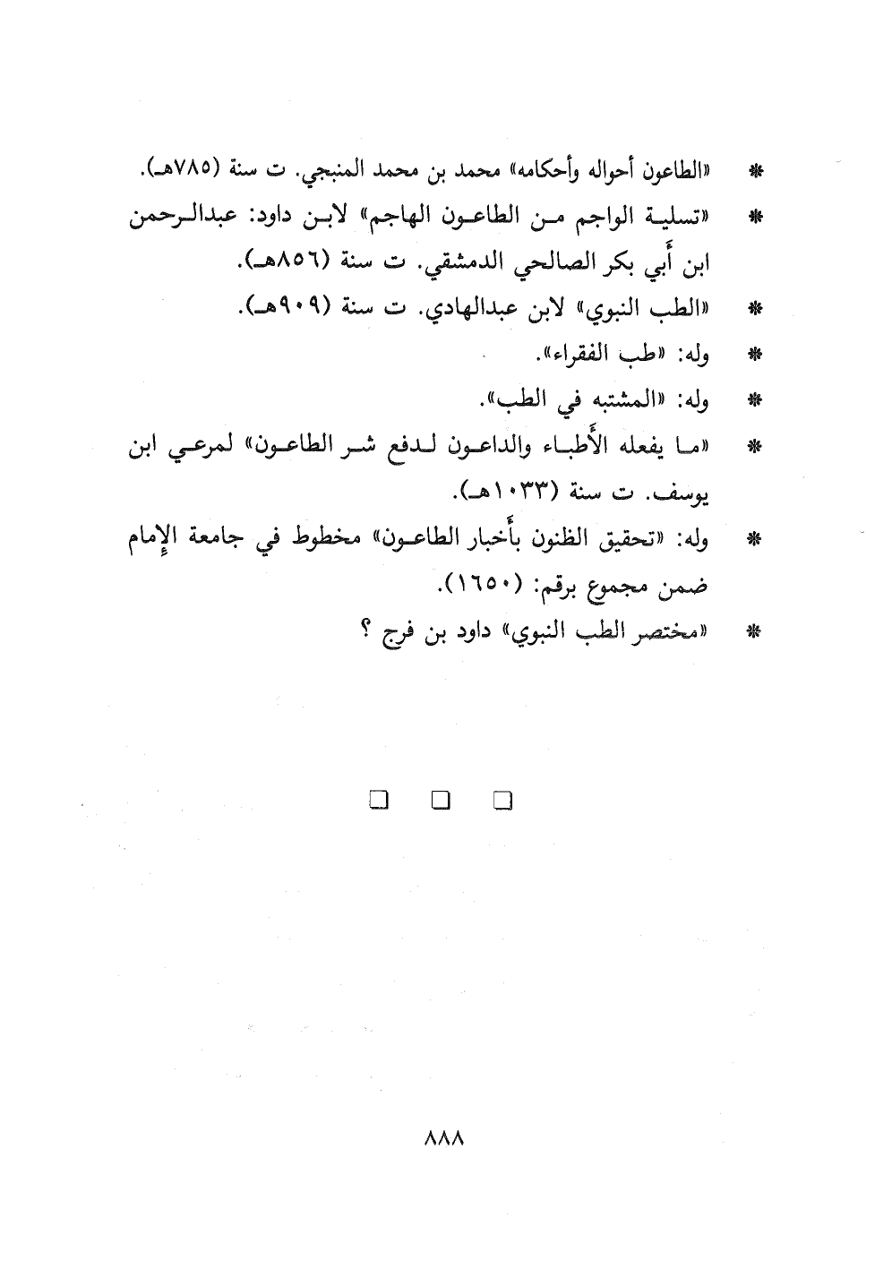 - " الطاعون أحواله وأحكامه " محمد بن محمد المنبجي ت سنة (٧٨٥ هـ) .