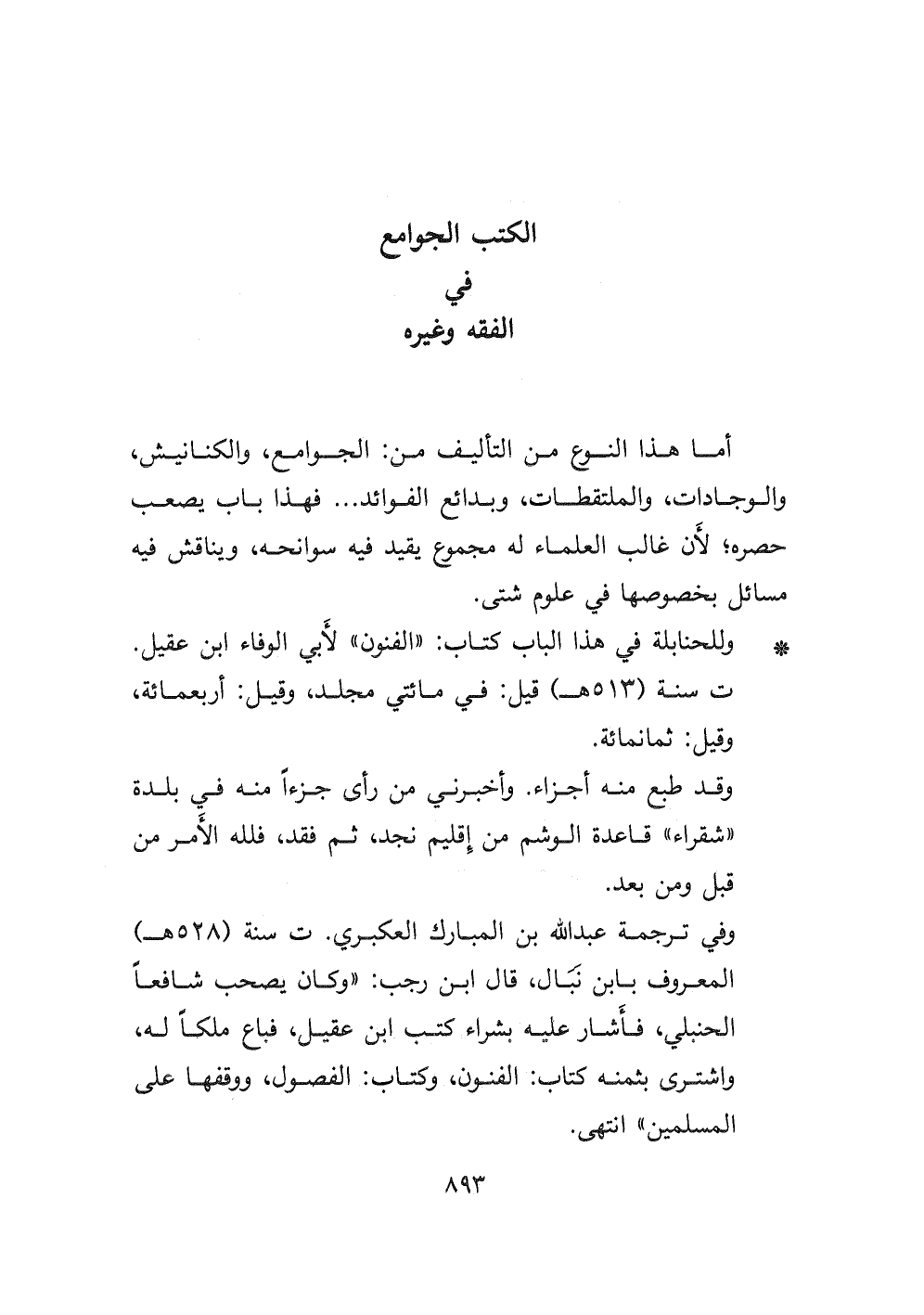 - وللحنابلة في هذا الباب كتاب: " الفنون " لأبي الوفاء ابن عقيل.