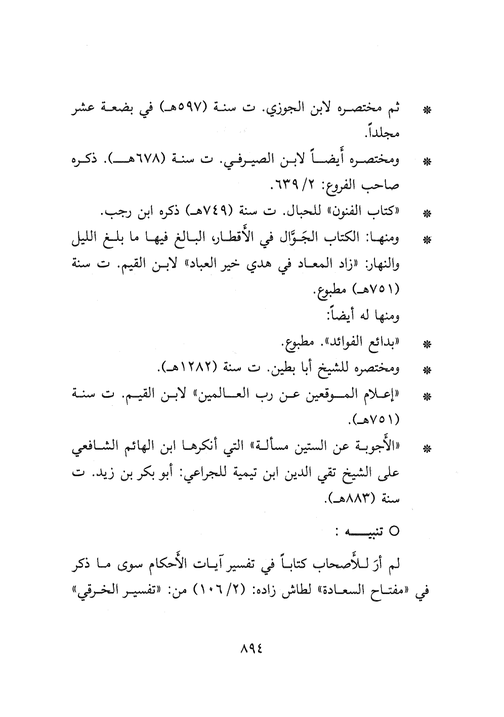 * تنبيه: لم أر للأصحاب كتابا في تفسير آيات الأحكام سوى ما ذكر في " مفتاح السعادة " لطاش زاده: (٢/ ١٥٦) من: " تفسير الخرقي "