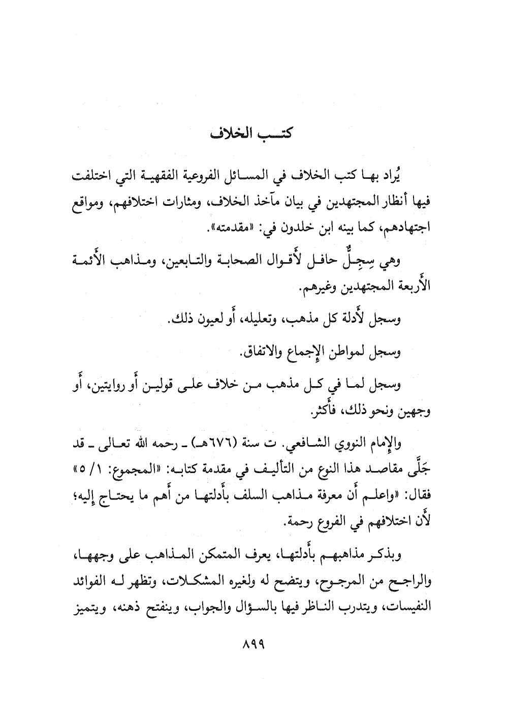 يراد بها كتب الخلاف في المسائل الفروعية الفقهية التي اختلفت فيها أنظار المجتهدين في بيان مآخذ الخلاف، ومثارات اختلافهم، ومواقع اجتهادهم، كما بينه ابن خلدون في: " مقدمته ".