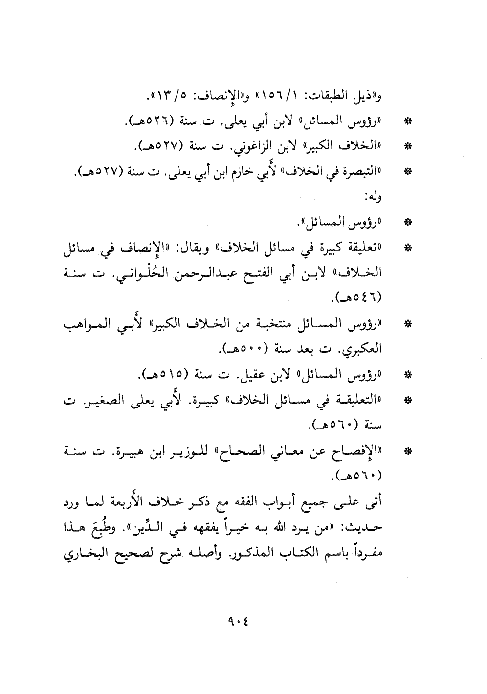 - " رؤوس المسائل " لابن أبي يعلى ت سنة (٥٢٦ هـ) .