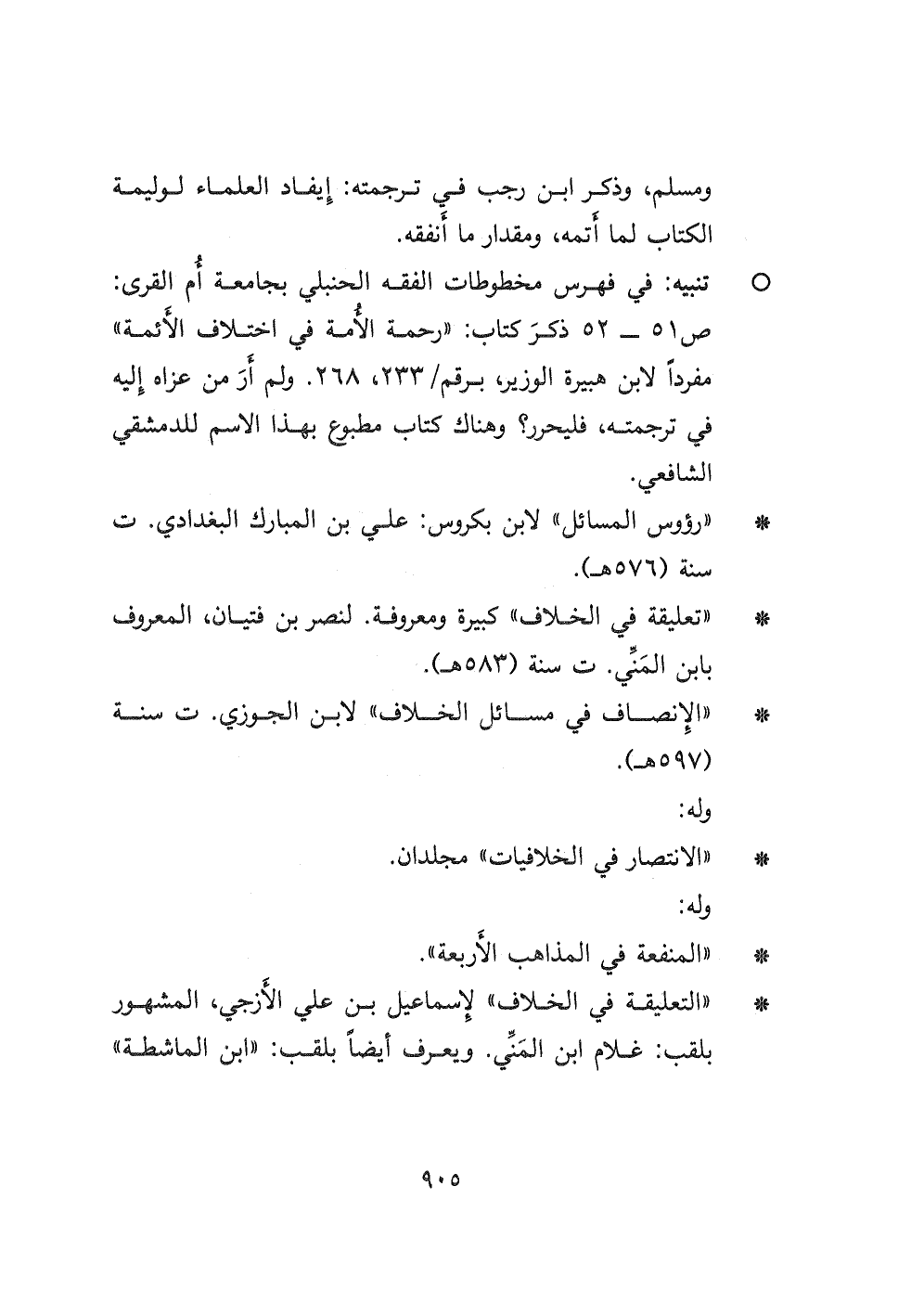 * تنبيه: في فهرس مخطوطات الفقه الحنبلي بجامعة أم القرى: ص ٥١- ٥٢ ذكر كتاب: " رحمه الأمة في اختلاف الأئمة " مفرداً لابن هبيرة الوزير برقم/٢٣٣، ٢٦٨. ولم أر من عزاه إليه في ترجمته، فليحرر؟ وهناك كتاب مطبوع بهذا الاسم للدمشقي الشافعي.