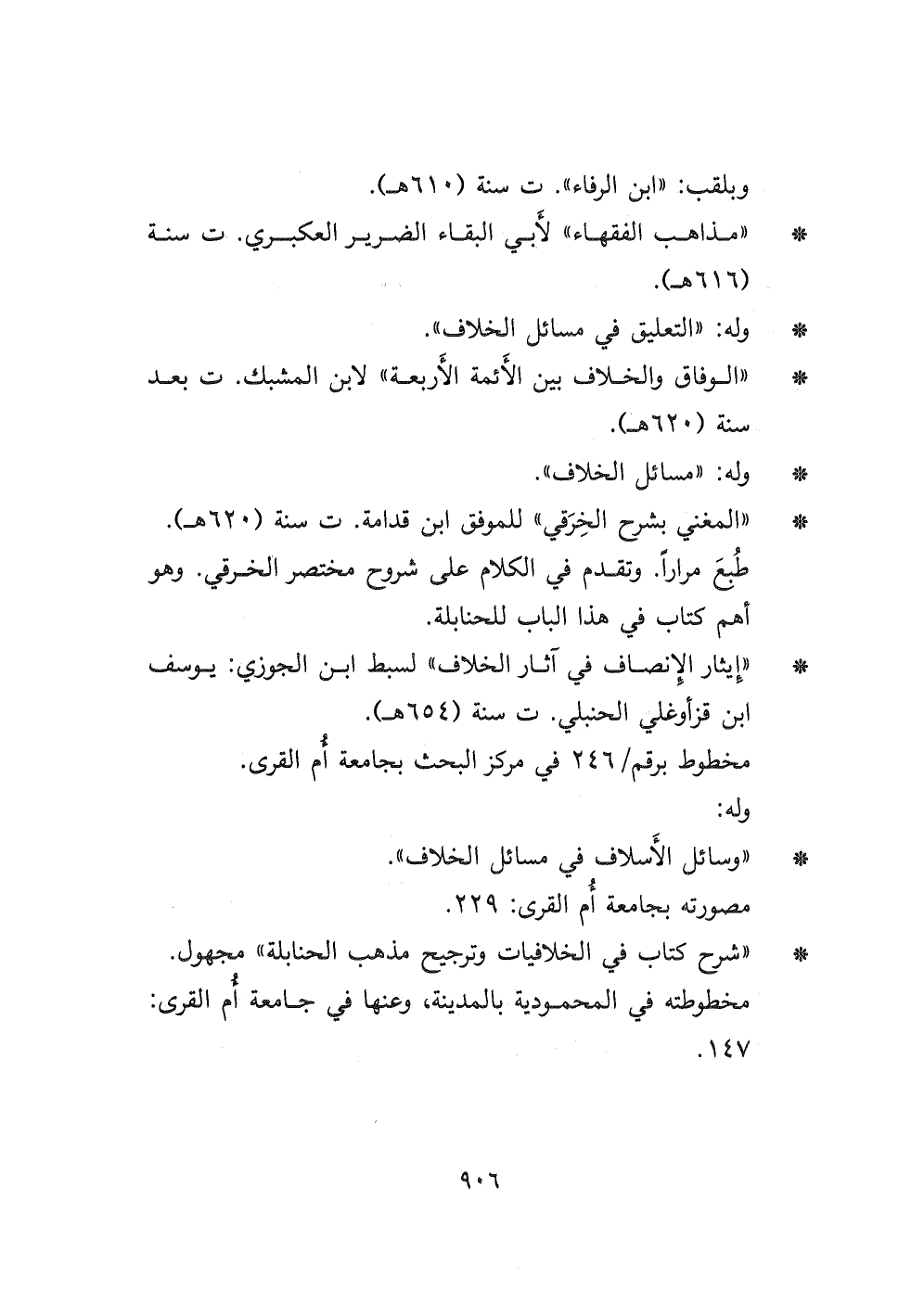 - " وسائل الأسلاف في مسائل الخلاف ". مصورته بجامعة أم القرى: ٢٢٩.
