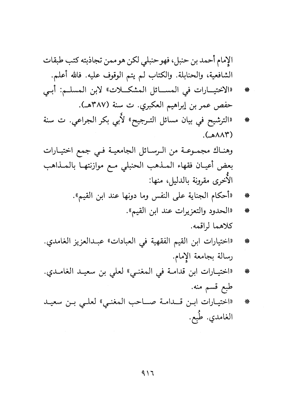 - " اختيارات ابن قدامة صاحب المغني " لعلي بن سعيد الغامدي. طبع.