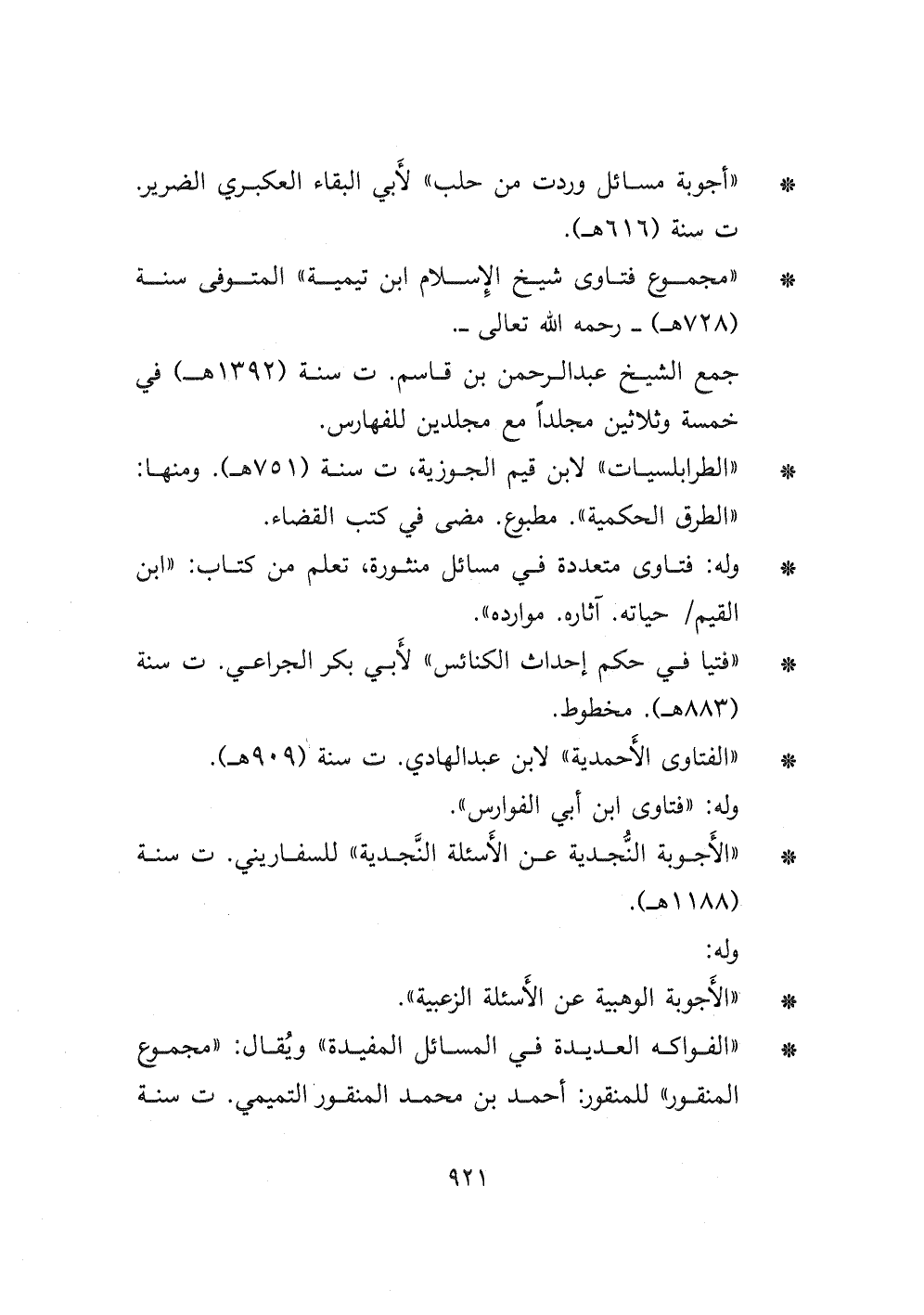 - " الفواكه العديدة في المسائل المفيدة " ويقال: " مجموع المنقور " للمنقور أحمد بن محمد المنقور التميمي ت سنة