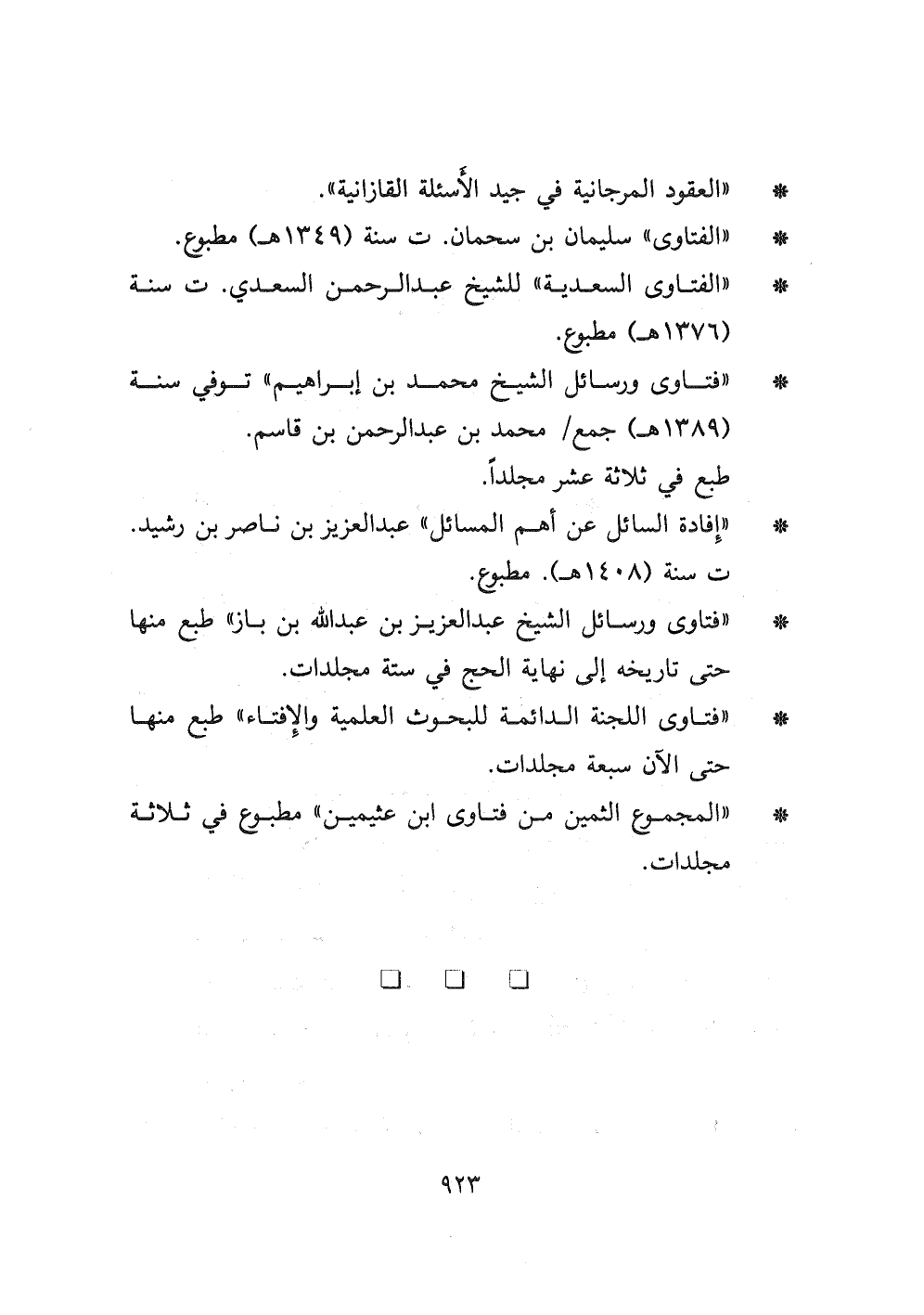 - " الفتاوى " سليمان بن سحمان ت سنة (١٣٤٩ هـ) مطبوع.