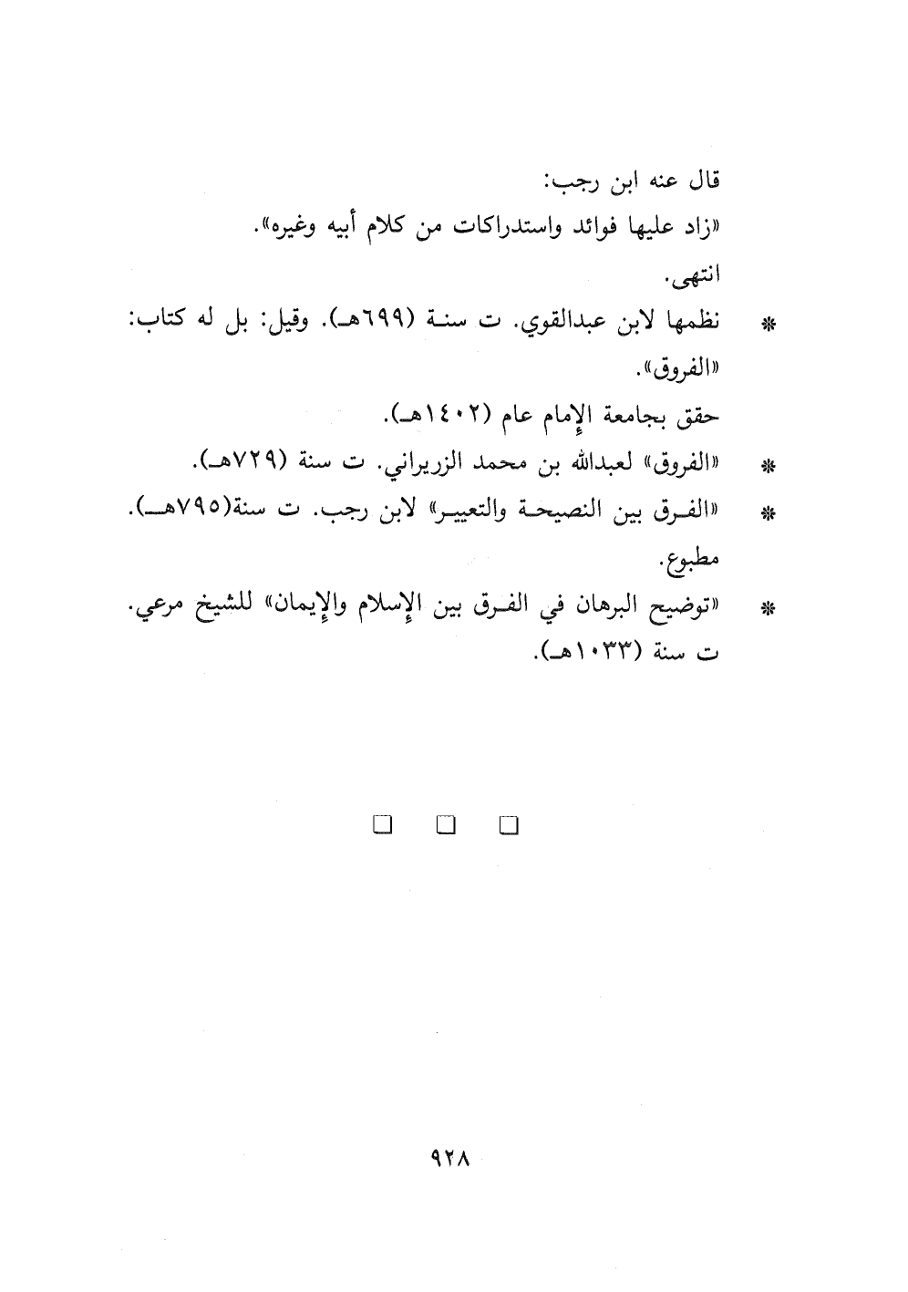 - نظمها لابن عبد القوي ت سنة (٦٩٩ هـ) . وقيل: بل له كتاب: " الفروق ". حقق بجامعة الإمام عام (١٤٠٢ هـ) .
