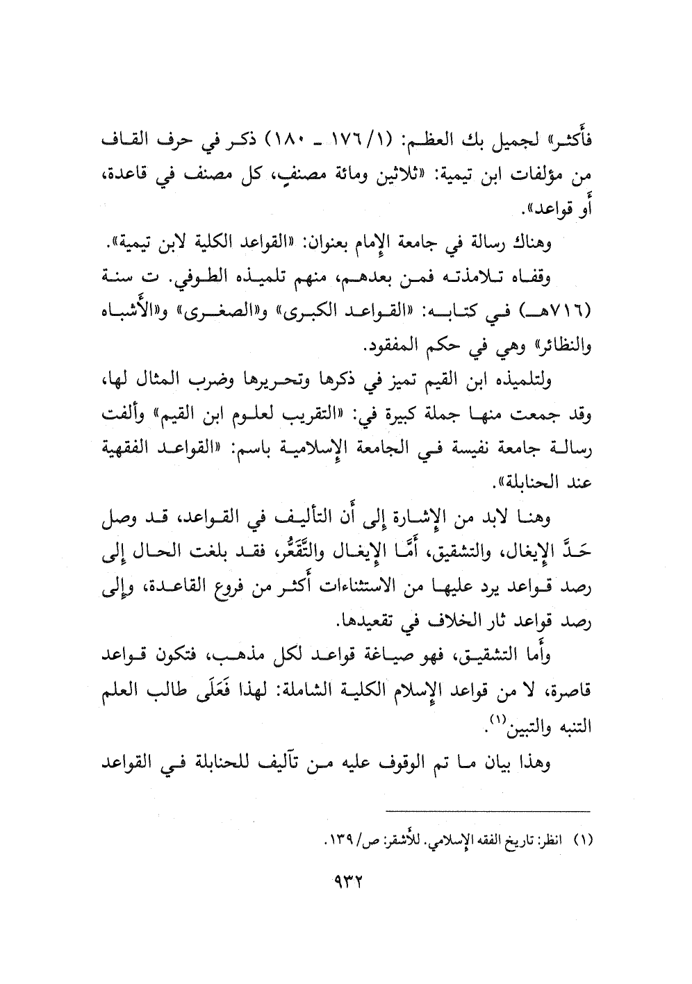 فأكثر " لجميل بك العظم: (١/١٧٦- ١٨٠) ذكر في حرف القاف من مؤلفات ابن تيمية: " ثلاثين ومائة مصنف، كل مصنف في قاعدة، أو قواعد ".