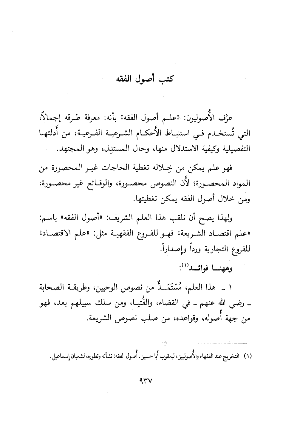 ولهذا يصح أن نلقب هذا العلم الشريف: " أصول الفقه " باسم: " علم اقتصاد الشريعة " فهو للفروع الفقهية مثل: " علم الاقتصاد " للفروع التجارية ورداً وإصداراً.